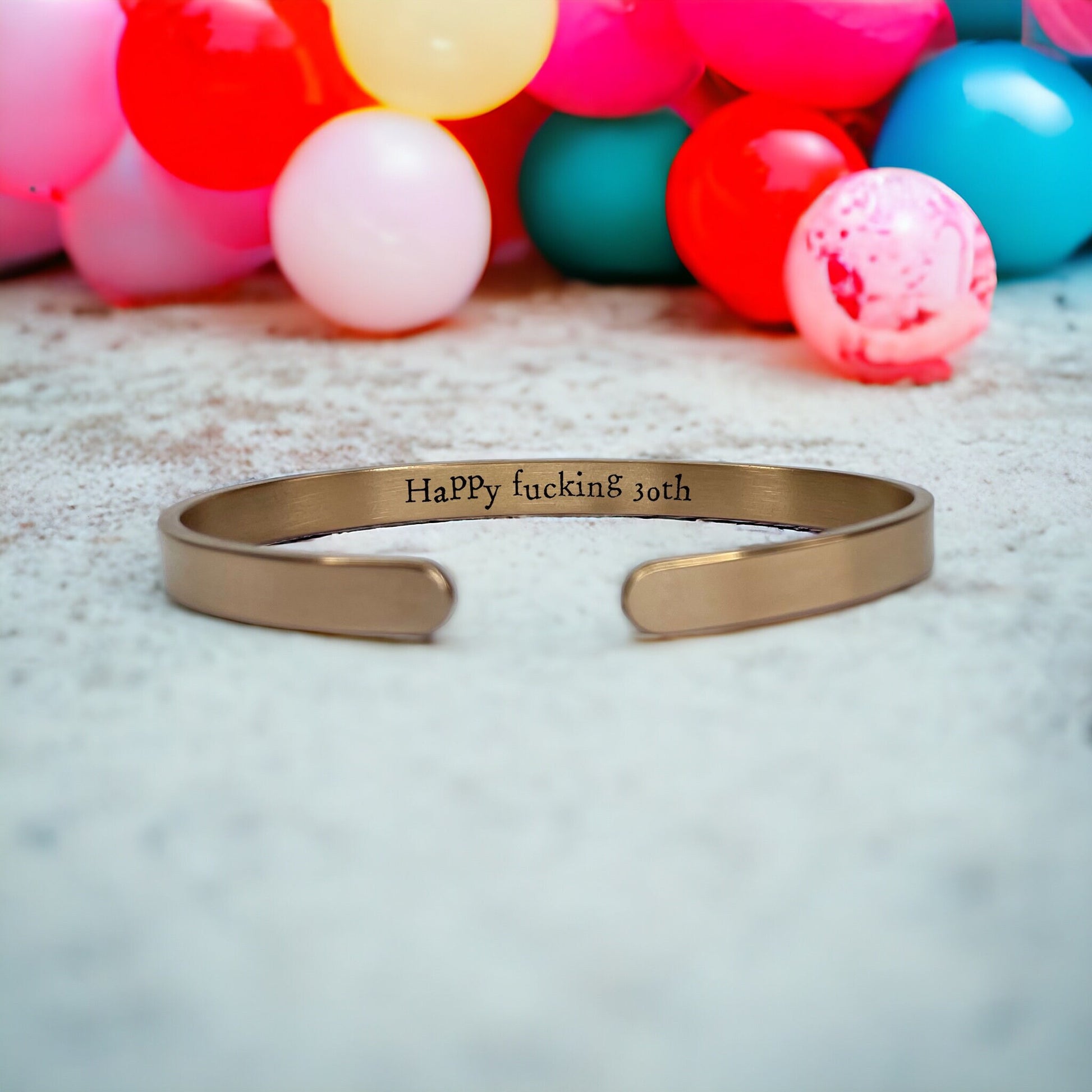 With a hidden message, this simple birthday bangle is dainty, yet strong, and serves as a daily reminder of the wearer's birthday milestone.